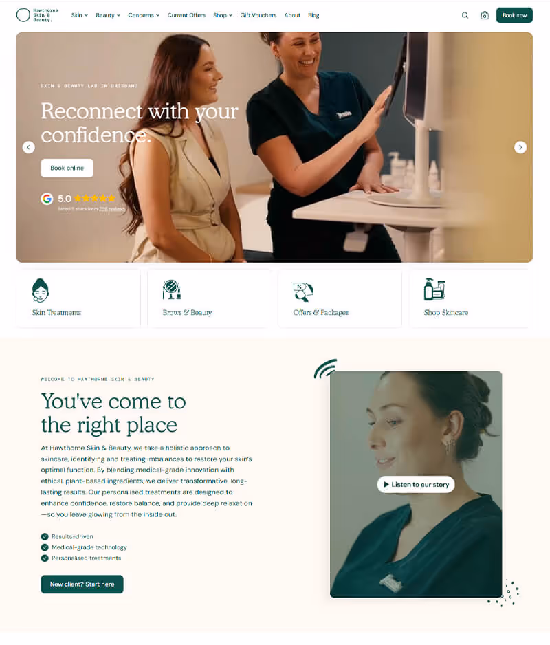 Hawthorne Skin & Beauty’s transformation with G-Site turned an outdated site into a thriving digital storefront that mirrors their in-clinic excellence. With a powerful mix of design, SEO, and conversion strategy, the new platform attracts, educates, and converts with ease — helping more clients fall in love with their skin every day.