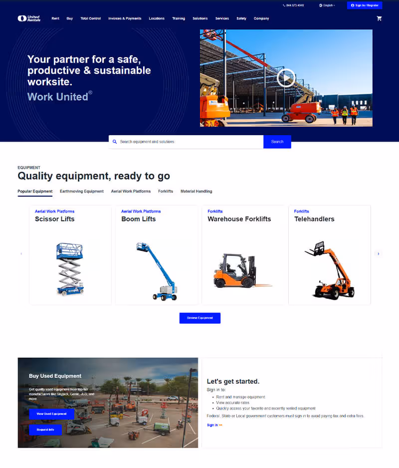 Despite their strong market presence, United Rentals’ old website wasn’t built to convert. It lacked user-friendly design, mobile optimization, and conversion-focused pathways, limiting their ability to turn visitors into customers.